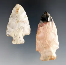 Pair of colorful Ohio points made from Flint Ridge Flint. 1 is Ex. Dilley and Parks collection. |