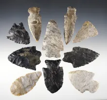 Set of 10 nice Ohio points. A good variety of types in this group. The largest is 2 11/16". |