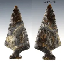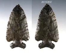 Exceptional flaking on this 3 1/8" Ohio Basal Notch made from black Coshocton Flint. |