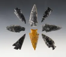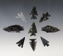 Set of 9 Obsidian points found in Lake Co., Oregon. Ex. Slim Fuel. The largest is 1 9/16". | OREGON | 105.00 | |