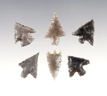 Set of 6 nice Obsidian points from the Columbia Plateau area. The largest is 15/16". |