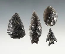 Set of 4 well made Obsidian points found in Klamath, Oregon. The largest is 2 1/2". |
