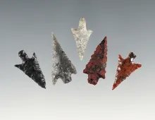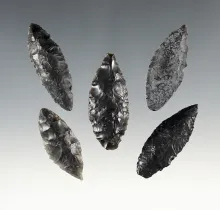 Set of 5 finely made Oregon points. The largest is 2 3/16". |
