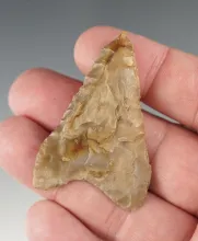 Uniquely styled 1 3/16" Dart point with nice basal thinning. Found in Umatilla, Oregon. |
