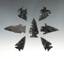 Set of 7 Elko points made from Obsidian. Found in Oregon. The largest is 2 11/16". |