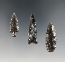Set of 3 Pinto Basin Points with sloping shoulders. Found in Oregon. The largest is 1 11/16". |