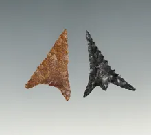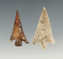 Pair of fine Oregon points including a 1 1/16" Gunther Triangle. Ex. Howard collection. |