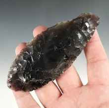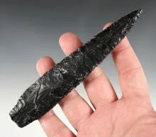4 13/16" Large Obsidian Knife that is nicely patinated. Found in Lake Co., Oregon. |