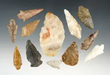 Set of 12 assorted Columbia River points. The largest is 1 11/16". |