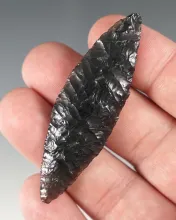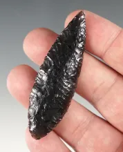 Superbly flaked 2 3/4" Cascade found in Lake Co., Oregon. Made from Obsidian. |
