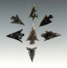 Set of 7 assorted Oregon points made from Obsidian. The largest is 1 1/16". |