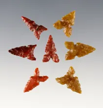 Set of 7 colorful points found near the Columbia River, Oregon. Ex. Billy Bush. The largest is 5/8". |