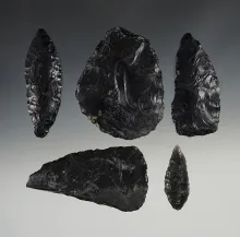 Set of 4 well made Obsidian points found in Lake Co., Oregon. The largest is 1 9/16". | OREGON | 65.00 | |