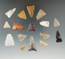 Group of 16 triangle points found in Eastern South Dakota, largest is 1". |