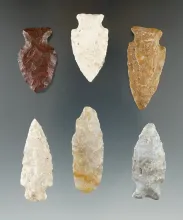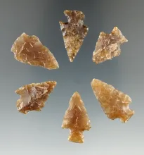 Group of six Knife River Flint arrow points found by Harlan Olson in Kingsbury Co., SD. |