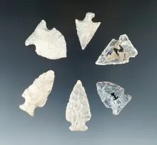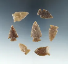Set of seven nice arrowheads found in the Dakotas, largest is 1 3/8". |