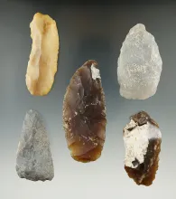 Group of five assorted knives and tools found in Eastern South Dakota, largest is 3 3/16". |