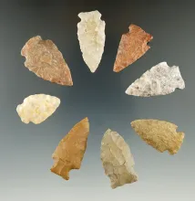 Set of 8 assorted arrowheads found in Eastern South Dakota, largest is 1 9/16". |