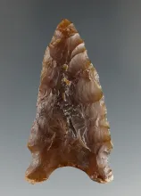 2 1/4" Knife River Flint Dalton variant with restoration to one lobe and lower part of edge. SD. |