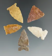 Set of five assorted points found in Eastern South Dakota, largest is 1 1/8". |