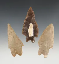 Set of 3 assorted points found in Texas. The largest is 2 5/16". |