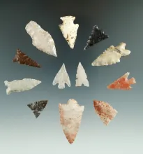 Group of 12 assorted arrowheads found in Utah, largest is 1 9/16". |
