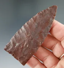 Exceptional flaking on this 3 1/8" early blade with nicely ground lower edges and base found in Utah |