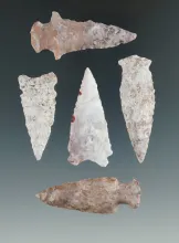 Set of five well patinated arrowheads found in Utah, largest is 2". |