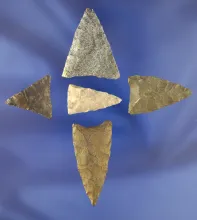 Set of five nice Triangle Points found in Virginia, largest is 1 9/16". |