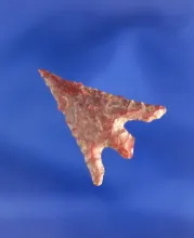 1 9/16" Snake River Dart point made from beautiful heavily patinated multicolored material. |