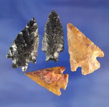 Set of four assorted arrowheads found in Oregon and Washington, largest is 1 9/16". |