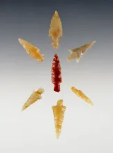 Set of 8 colorful points found near the Columbia River, Washington/Oregon. Ex. Gene Favell |