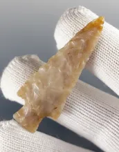 1 1/4" Chalcedony Snake River Dart Point. Found near Mid-Columbia River.Washington/Oregon. |
