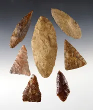 Set of 7 Blades found near the Columbia River in the Washington/Oregon area. The largest is 3 5/8". |