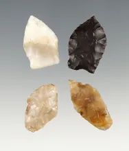 Set of 4 Dart Points found around the Atlatl Site, Klickitat Co., Washington. The largest is 1". |