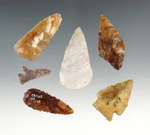 Set of 6 assorted points found in the Oregon/Washington area. The largest is 1 7/8". |