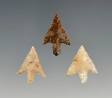 Set of 3 Rabbit Island points - Klickitat Co., Washington. Ex. Frank Buehler. The largest is 3/4". |