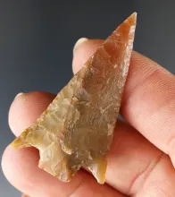 2 1/2" thin and nicely flaked blade made from translucent pink and white Flint - Columbia River, WA.