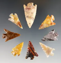 Group of 8 assorted arrowheads found along the Columbia River in Washington and Oregon. |