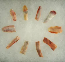 Set of 10 colorful Flint Ridge Flint Hopewell Bladelets found in Licking Co., Ohio. |
