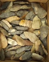 Large group of flint Knives and Blanks, many are Hornstone. |