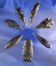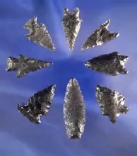 Group of eight Obsidian artifacts found near Fort Rock Oregon, largest is 1 7/8". |