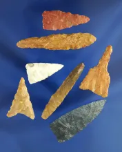 Set of six colorful Hopewell Cores, largest is 1 13/16" tall found in Ohio. Ex. F. C. Jones, Gilbert