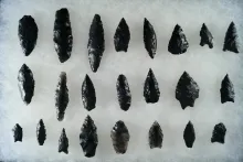Set of 23 obsidian flaked artifacts from the Great Basin area, largest is 2 5/8". 55.00