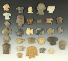 Large group of assorted Ohio Hafted Scrapers from the collection of the late Dr. Jim Mills. |