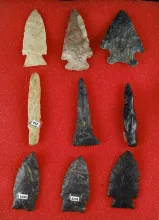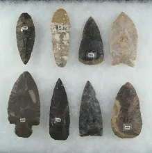 Set of 8 Assorted Flaked Artifacts found in Ohio, largest is 3 5/16". |
