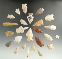 Group of 21 Midwestern points and four drills. Largest is 1 9/16". |
