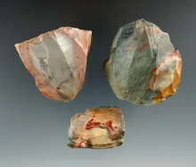Three very colorful and rare Green Flint Ridge Hopewell Cores. Found in Licking Co., Ohio. |
