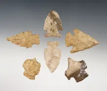 Set of 6 Cornernotch points and drills found in Central Kentucky. The largest is 1 3/4". |