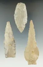 Set of three flaked artifacts found in Tennessee, largest is 3 7/16". |